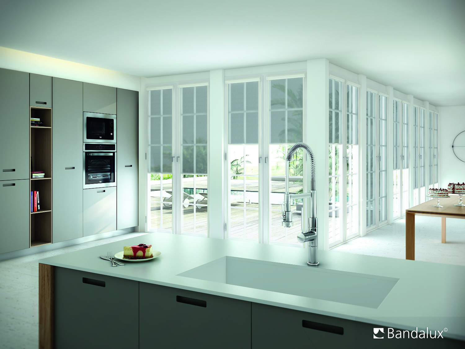 Le store FIT permet une opacité presque totale grâce à la gamme de tissus blackout et au système de coulisses latérales.Se fixe directement sur l'ouvrant des portes et des fenêtres, sans perçage.