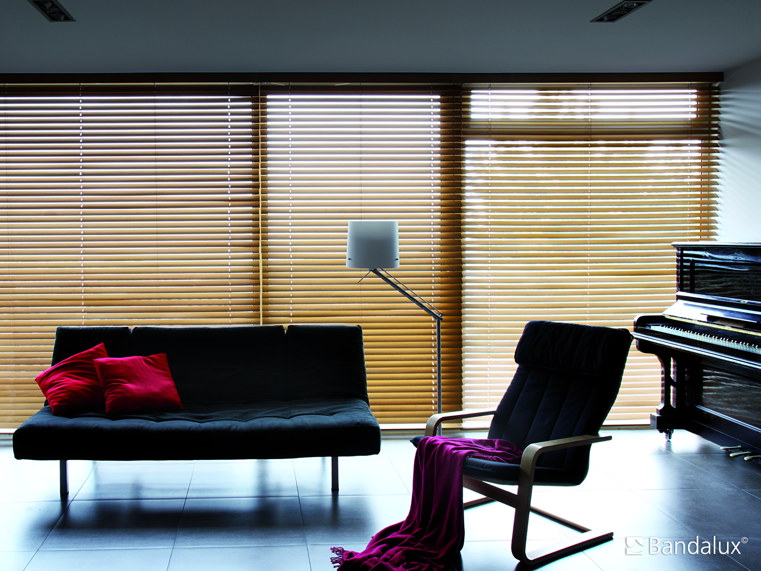 Les ligne subtiles du store vénitien bois transforment la lumière pour un rendu naturel parfait. Cordon, Chaînette, Manivelle, Moteur